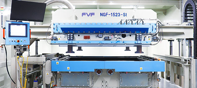 世界上最大尺寸的TOM成形机。可以应对大型产品,例如汽车外部零部件等的覆膜加工。